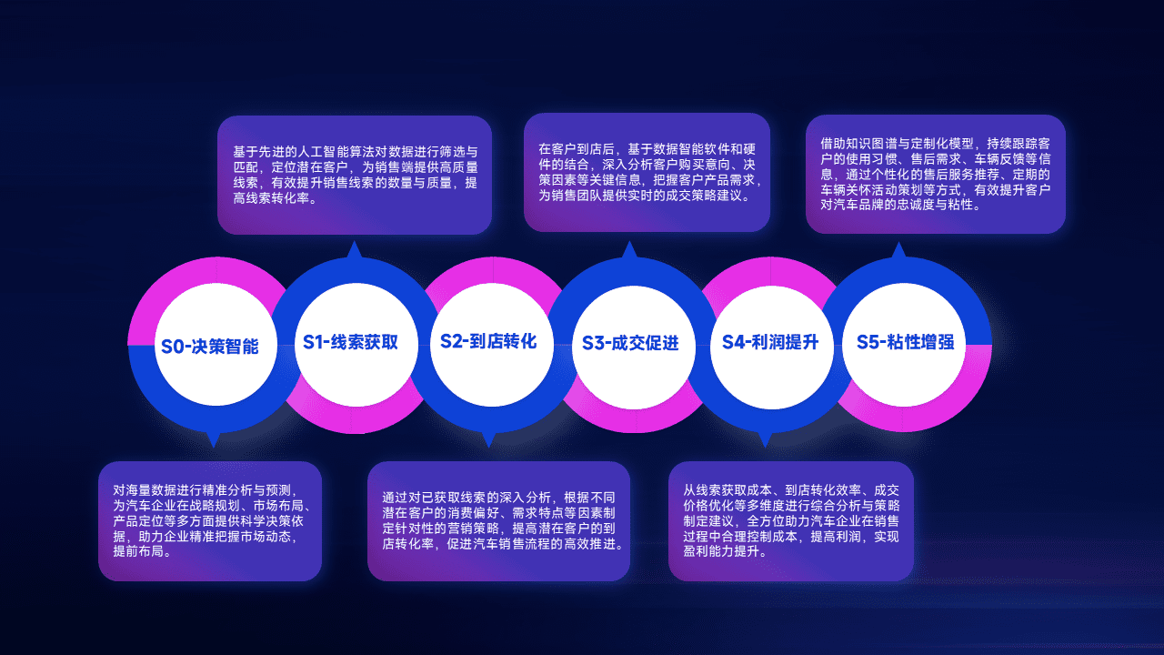 通过拓宽潜在客户来源、、优化线索分配并提高到店转化率,,以增强销售效率。。。。同时,,,,利用线索数据不断优化分析模型,,有效提升转化率,,,,扩大营销影响力。。。